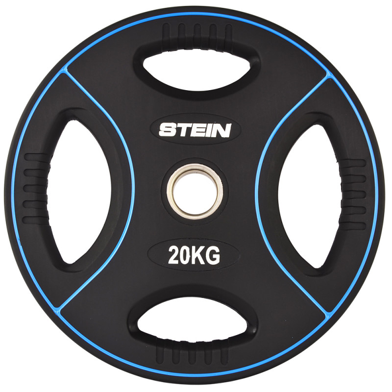 - високоміцне TPU (поліуретанове) покриття. кожна вага диска - з окантовкою різного кольору для зручності диференціації.
