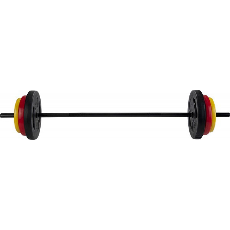 Штанга складається зі штанги, пари затискачів і трьох пар ваг. У набір входять наступні тарілки: