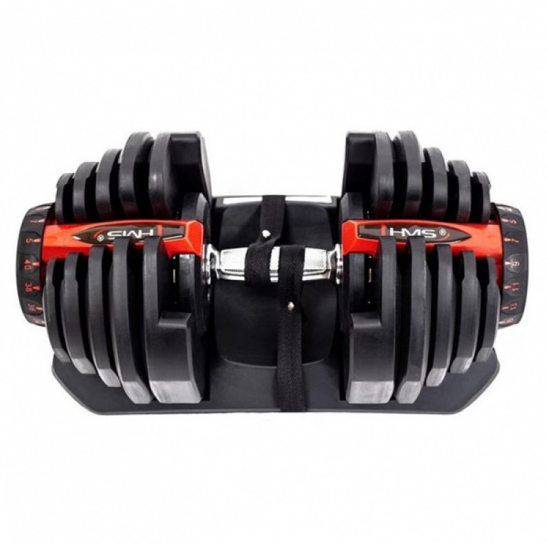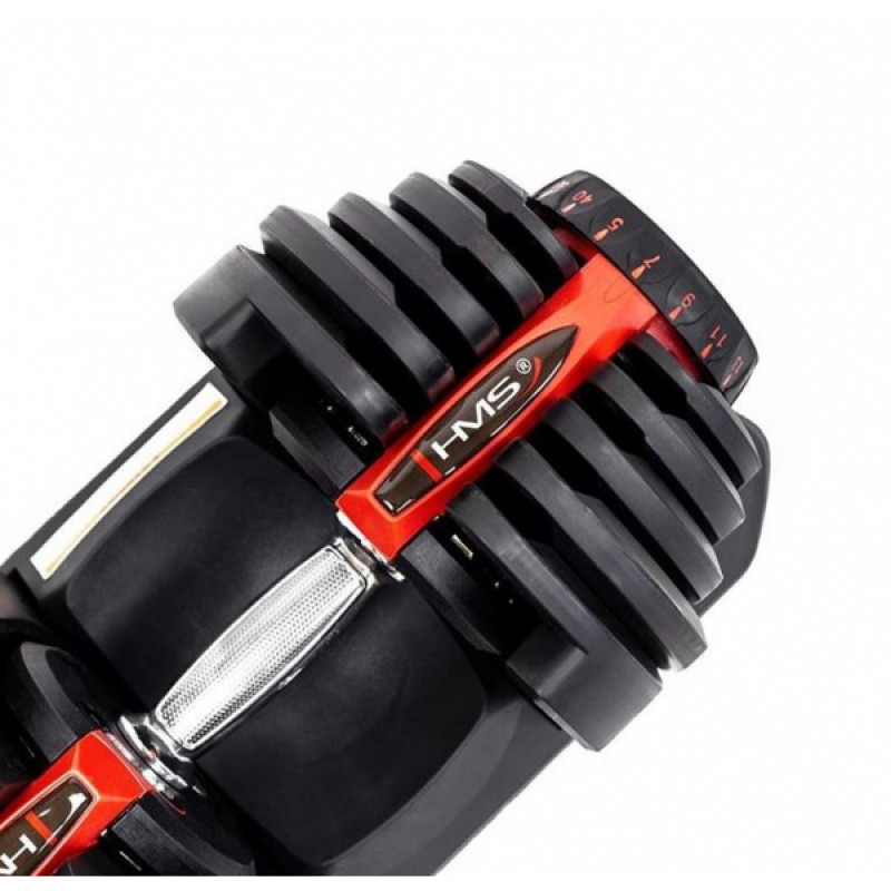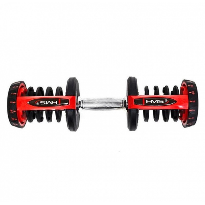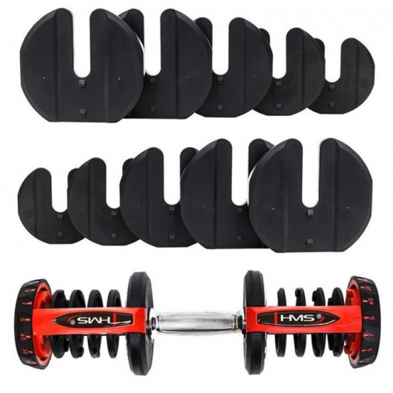 SR80 HMS — це гантель з регулюванням ваги. До складу набору входять штанга, 10 дисків і підставка. Цей продукт — ідеальне рішення для тих, хто тренується вдома, але він також чудово підійде для тренажерного залу, замінивши цілу стійку з традиційними гантелями.