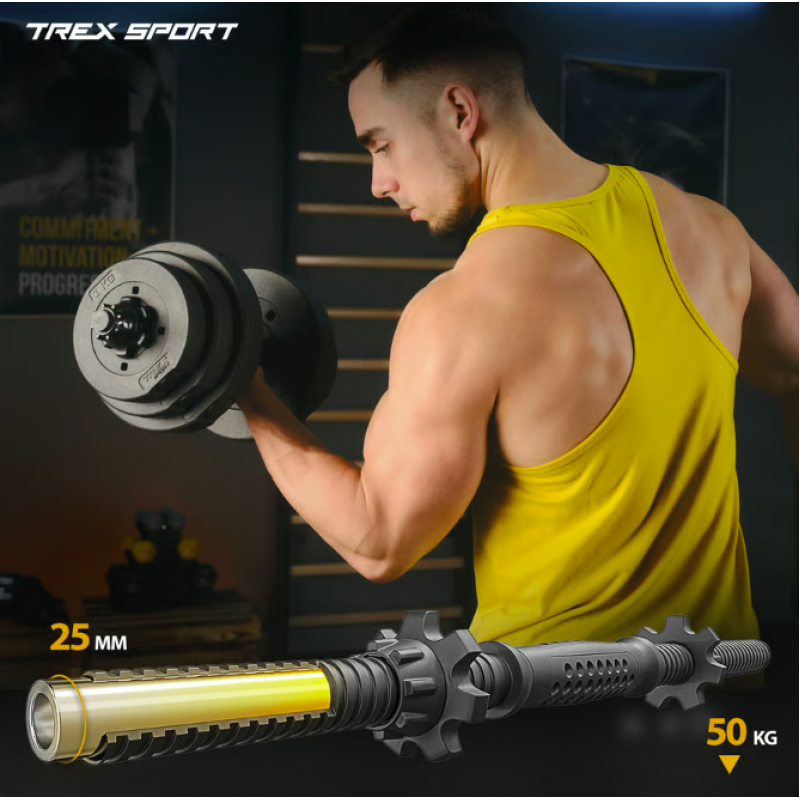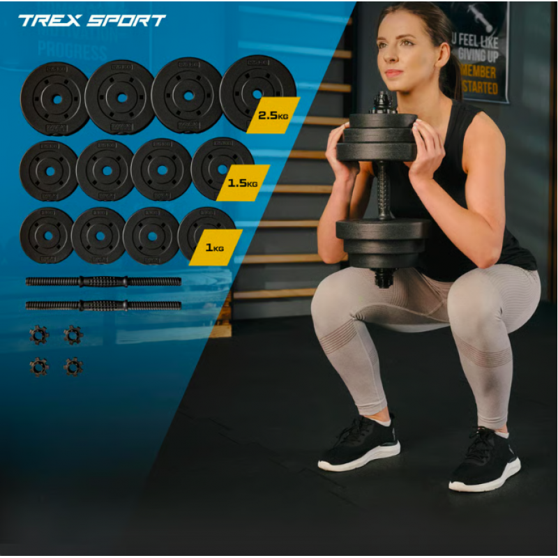 Удосконалюйте форму, збільшуйте витривалість і відчуйте контроль над власним прогресом. Набір гантелей TREX Sport TX-010SK - це не просто інвентар, а потужний інструмент для домашніх тренувань, який дозволяє рости разом із вашими цілями. Ніяких компромісів - тільки стабільність, функціональність і результат. Ідеальний варіант для ефективного розвитку м'язів у домашніх умовах. Система складання з гайками подвійної фіксації гарантує надійність, а покриття корпусу дисків - захист як для підлоги, так і для самого обладнання.