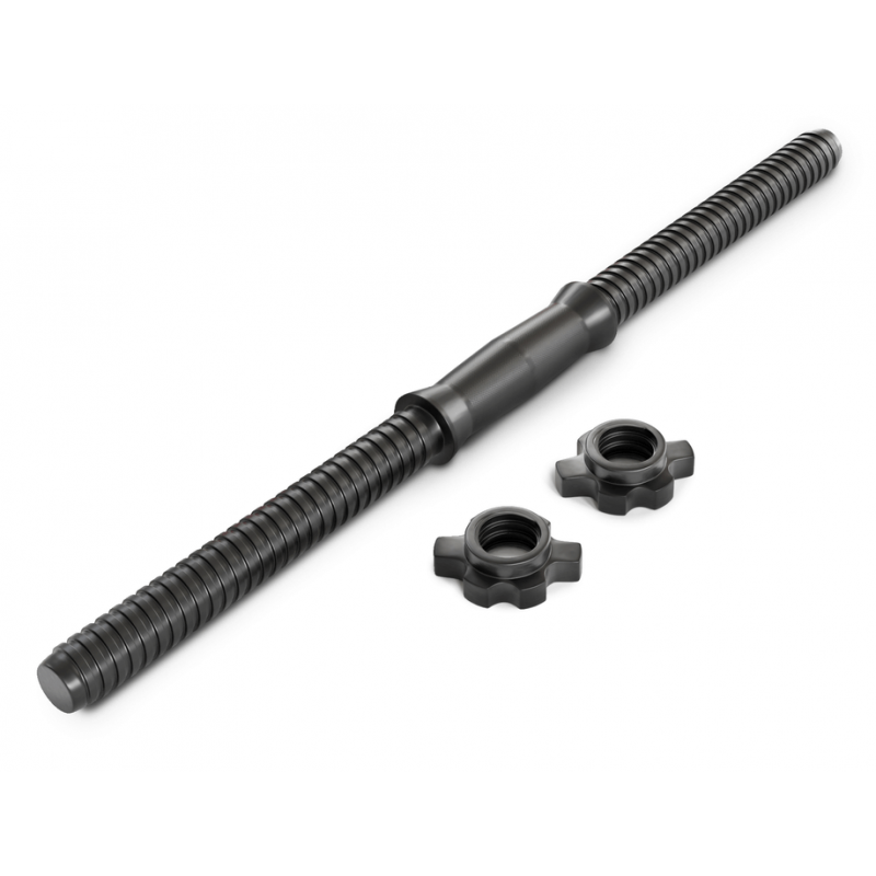 Набір містить цілих 8 дисків, тому ви можете вільно регулювати навантаження, підбираючи вагу гантелі відповідно до своїх потреб і навичок. У комплект також входять прямий металевий гриф, покритий особливим пластиком, та 2 гайки з нарізною різьбою.