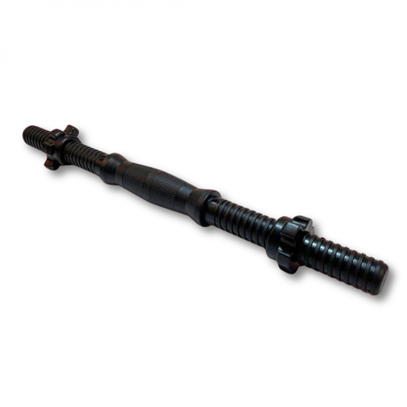 Довжина грифа становить 42см, а максимальне навантаження сягає 60кг, що робить його універсальним вибором як для початківців, так і для досвідчених спортсменів. Діаметр грифа становить 25 мм, що робить його універсальним для більшості дисків. Компактність і продумана конструкція дозволяють легко поєднувати гриф з різними дисками та використовувати його для широкого спектра силових вправ у домашніх умовах.