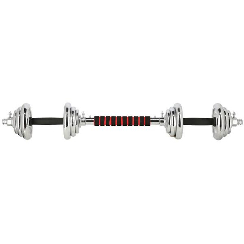 STC21 HMS - це набір хромованих гантелей у валізі, що має також функцію штанги. Повністю обладнаний тренажерний зал повинен мати гантелі та штангу. Однак, в домашньому тренажерному залі питання економії простору є дуже важливим. Тому ідеальним рішенням є набір 2 в 1 HMS STC21. HMS STC21 - це набір з двох гантелей зі змінними обважнювачами. Завдяки спеціальній системі з'єднання його можна перетворити на штангу. Це інноваційне рішення дозволяє користувачеві економити простір і значно розширює діапазон тренувальних можливостей у порівнянні зі звичайним набором гантелей. Процес трансформації гантелей у штангу дуже простий і не займає багато часу. Завдяки набору HMS STC21 можна виконувати вправи, спрямовані на всі групи м'язів і в різноманітних конфігураціях. Бренд HMS фокусується в першу чергу на матеріалах найвищої якості. HMS STC21 виготовлений з хромованої сталі, що характеризується дуже високою міцністю. Це гарантує роки безпроблемного використання. На ручках гантелей є гума, що забезпечує міцний і зручний хват. З'єднувач, що входить до складу штанги, покритий губкою, яка дуже корисна, наприклад, під час виконання присідань. Завдяки їй відсутній дискомфорт, викликаний тиском штанги на спину. Безумовною перевагою STC21 є те, що вона поміщається в кейс, який йде в комплекті. Це дає змогу з легкістю виконувати тренування вдома та в будь-якому іншому місці. Крім того, валіза забезпечує порядок, а також економить простір. Продукт HMS підходить як для просунутих користувачів, так і для початківців. Почніть тренуватися вже сьогодні, STC21 - ідеальний вибір для домашнього спортзалу. Специфікація: Матеріал: хромована сталь Розміри грифа: Довжина: 35 см Діаметр: 24 мм Діаметр рукоятки: 30 мм Розміри з'єднувальної системи: Довжина: 29,5 см Діаметр: 30 мм Діаметр грифа: 39 мм Вага: 2,5 кг - 14,5 х 2,4 см 1,25 кг - 12,2 х 1,8 см 0,5 кг - 9,3 х 1,3 см Вага грифа: 1,1 кг Вага з'єднувальної системи: 0,7 кг Вага затискача: 0,2 кг Загальна вага набору: 21 кг До складу набору входить Коротка штанга х 2 Система з'єднання штанги х 1 Обважнювачі 2,5 кг х 4 Обважнювачі 1,25 кг х 4 Обважнювачі 0,5 кг х 4 Затискачі х 4 Примітки: Не для комерційного використання Гарантія 24 місяці