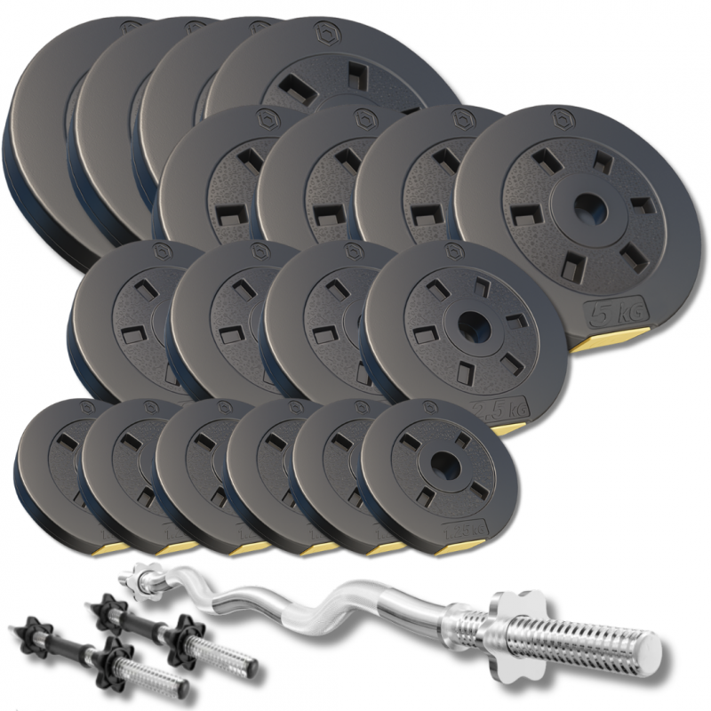 Besport PowerPro 86кг - це оптимальна конфігурація для домашнього спортзалу: набір включає W-подібний гриф довжиною 120см, який зменшує навантаження на зап'ястя та дозволяє зручно виконувати вправи на біцепс, трицепс, плечі та спину. Два гантельні грифи по 45см з гвинтовими замками створюють можливість варіювати вагу для вправ на руки, грудні м'язи, дельти, прес і навіть ноги, а також композитні диски Besport PowerPro, які не дряпають підлогу, не шумлять при використанні й мають гравіювання з унікальним дизайном. Гарантія є важливим підтвердженням необхідної якості. Ми впевнені в товарі, який продаємо, тому надаємо гарантію на обладнання 5 років.