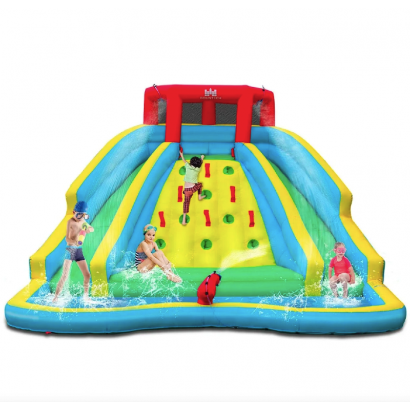Надувна водна гірка Costway Summer зі стійкою для скелелазіння двостороння