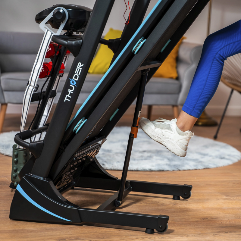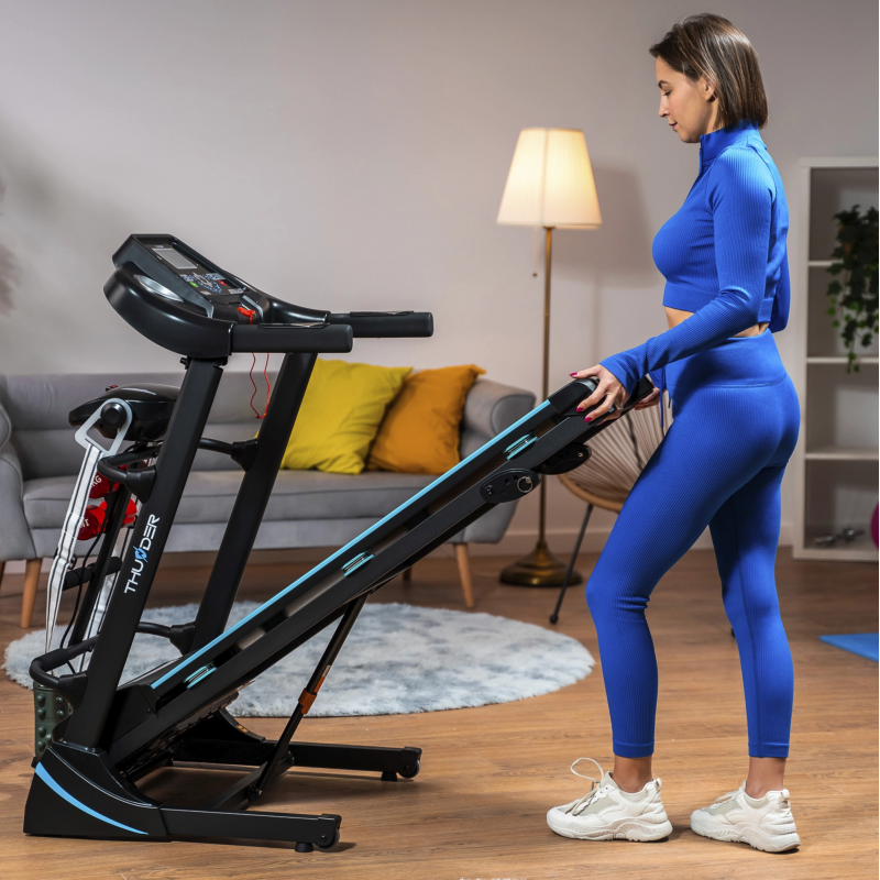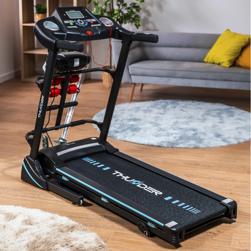 Електрична бігова доріжка THUNDER ICON-D-BLACK — ідеальне рішення, яке поєднує комфорт, функціональність і сучасні технології, гарантуючи ефективне тренування щодня.