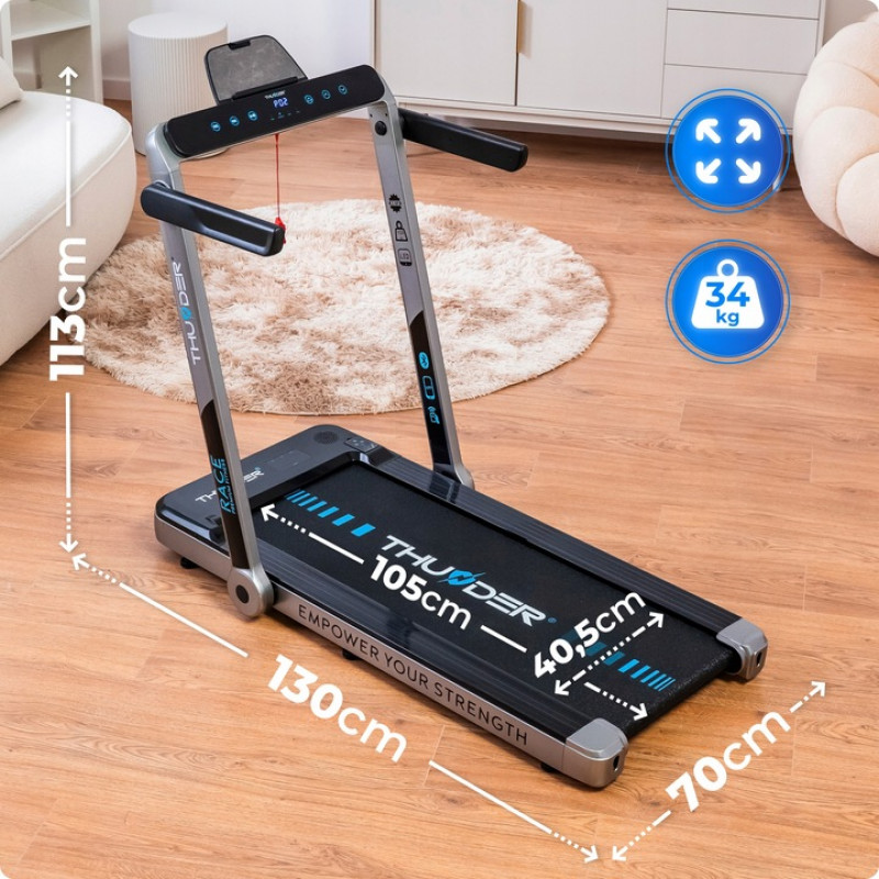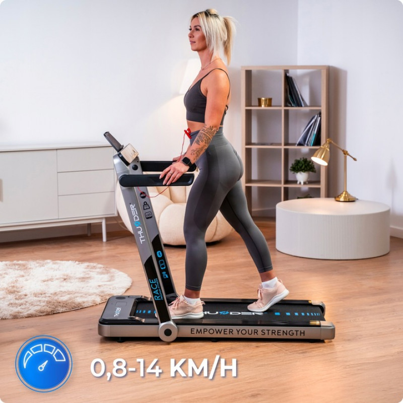 Шукаєте компактне і водночас сучасне обладнання для домашніх тренувань? Бігова доріжка THUNDER RACE-SILVER - ідеальне рішення, яке поєднує в собі зручність, функціональність і сучасні технології та гарантує ефективні тренування щодня!