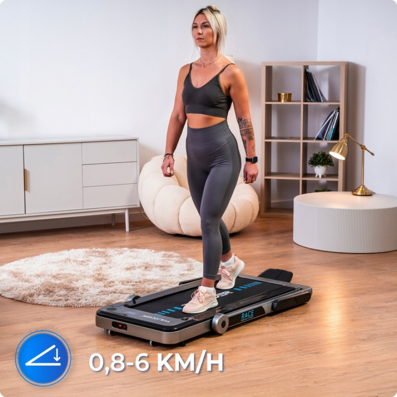 Завдяки своїй конструкції бігова доріжка поміщається під будь-який робочий стіл і забезпечує комфортне тренування навіть під час роботи. Елегантний дизайн і тиха робота пристрою роблять це розкішне рішення поєднанням комфорту, здоров'я та стилю в одному.