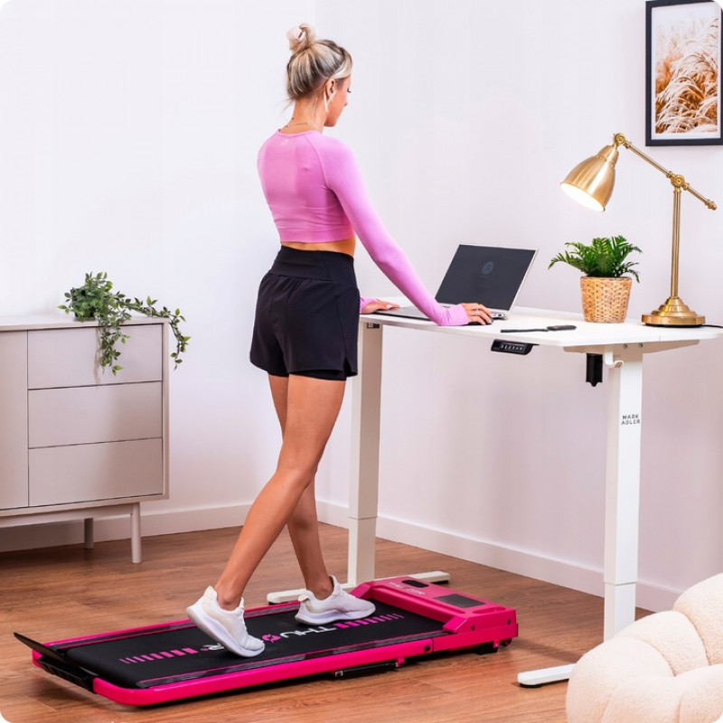 Завдяки надзвичайно тонкій конструкції бігова доріжка поміститься під будь-яким столом, забезпечуючи комфортне тренування навіть під час роботи. Елегантний дизайн і тиха робота пристрою роблять це розкішне рішення поєднанням зручності, здоров'я та стилю в одному.