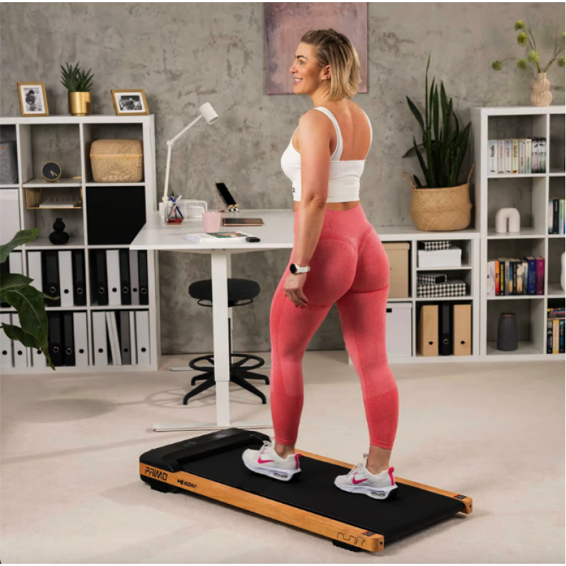 Бігова доріжка HS-850WP Primo від Hop-Sport майстерно поєднує стабільність, компактність та унікальний дизайн, стаючи ідеальним вибором для домашнього використання. Вона вирізняється не лише своєю функціональністю, яка дозволяє досягати швидкостей до 8 км/год для всебічних тренувань, але й елегантно вписується в будь-який інтер'єр завдяки оформленню бігового полотна в дерев'яному стилі. Завдяки міцній конструкції, ця бігова доріжка може витримувати навантаження до 120кг, а транспортувальні ролики забезпечують легкість переміщення після тренування. Додаткова перевага - це бездротовий пульт дистанційного керування, який додається до комплекту та робить управління швидкістю тренувань максимально зручним.
