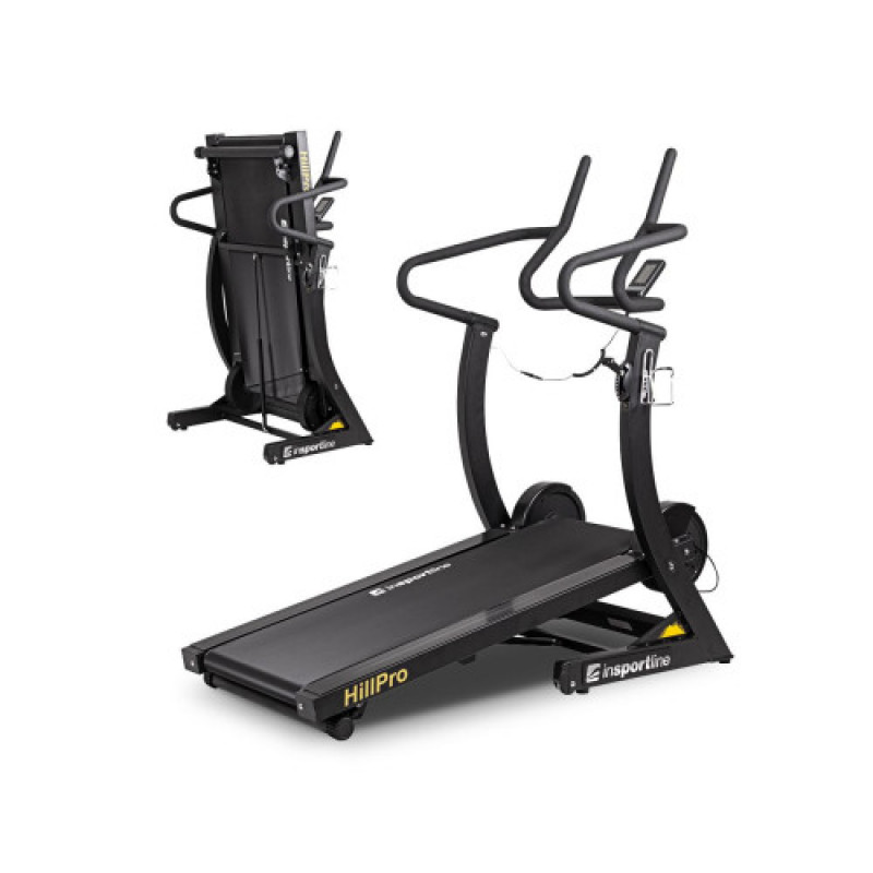 Бігова доріжка inSPORTline Hill Pro — це професійна безмоторна бігова доріжка, призначена для комерційного використання. Бігова доріжка має два важких маховики вагою 2 х 7,5 кг, які разом із масивною конструкцією забезпечують тиху та плавну роботу тренажера. Нахил бігової доріжки можна регулювати до 13° у чотирьох положеннях (8°, 9°, 11°, 13°), які користувач може легко встановити перед початком тренування. Бігова доріжка inSPORTline Hill Pro пропонує оптимальні умови для фітнес-тренувань. Безмоторний привід дозволяє регулювати швидкість ходьби або бігу залежно від потреб користувача.