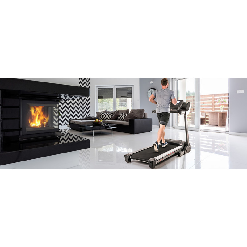 - Комфорт під час тренувань: Вбудований вентилятор для охолодження під час тренувань та зручні тримачі для планшета і пляшки забезпечують, що все необхідне завжди під рукою.