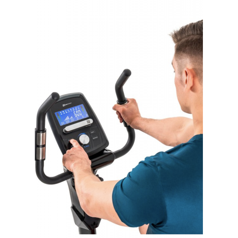 Для мотивації й моніторингу стану велотренажер обладнано інтуїтивно зрозумілим дисплеєм, який показує найважливіші параметри руху: час тренування, пройдена дистанція, калорії, швидкість, пульс, ват-контроль, H.R.C. тощо. Ви можете урізноманітнити заняття за допомогою 12 цільових програм тренування. Комп'ютер має 4 профілі користувача, які дозволяють налаштовувати параметри та зберігати дані тренувань усіх членів сім'ї.