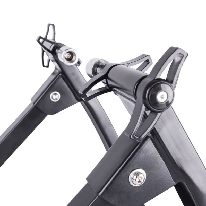 Зробіть ставку на обладнання, яке міцно тримається на місці навіть під час інтенсивного тренування. Металева конструкція з профілями 5 × 2,5 см і 3 × 3 см забезпечує високу стабільність без небажаного хитання. Використаний швидкозатискний механізм задньої осі дозволяє швидко і безпечно закріпити велосипед, щоб ви могли бути готові до старту в будь-який момент. Сумісність з велосипедами 26-28" робить тренажер універсальним рішенням для більшості велосипедистів, а точна обробка означає, що кожен рух є впевненим і контрольованим. Стабільність, яку ви відчуєте при кожному натисканні на педалі.