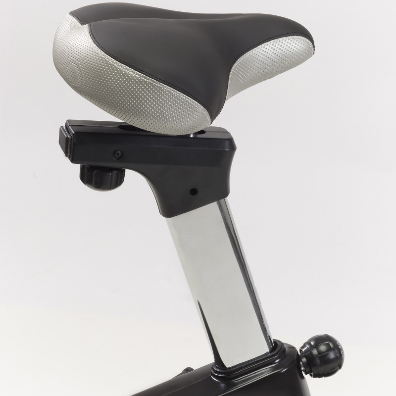 • Система опору - в велотренажері використовується електромагнітна система опору яка працює безконтактно, тому забезпечує тиху, плавну роботу та мінімальний знос механічних деталей. Вона дозволяє точно регулювати навантаження та підтримувати стабільну інтенсивність тренування, що робить заняття комфортними й контрольованими.