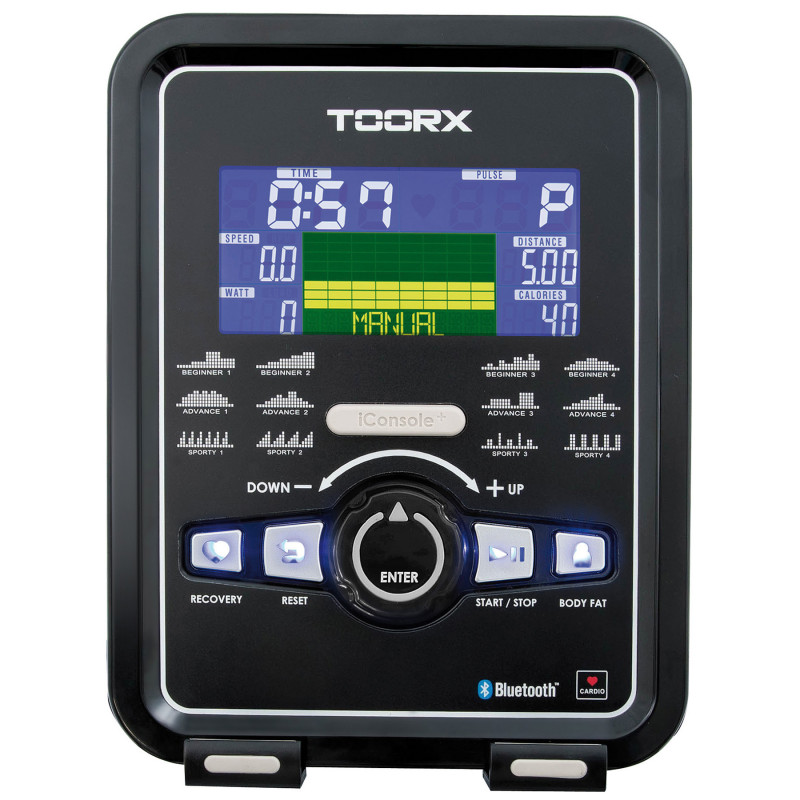 • Програми тренування: 1 ручний режим, 12 встановленими програмами, 4 користувацькими режимами та 4 програмам HRC (Heart Rate Control) для тренувань із контролем пульсу, тренування з фіксованою потужністю (Watts). Також передбачено тест на визначення рівня жирових відкладень, що допомагає відстежувати фізичну форму та прогрес.