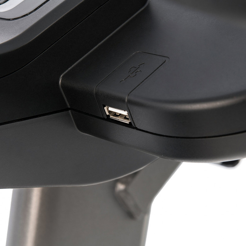 Консоль управління-зручна і інтуїтивно зрозуміла навіть для недосвідчених користувачів. Дисплей консолі оснащений великою графічною LED матрицею з приємним блакитним кольором світіння світлодіодів. Також на консолі розташований однорядковий цифровий LED дисплей на 21 знак з бурштиновим світінням і світлодіодні індикатори порогового пульсу (Серцевий монітор); - Підключення Bluetooth. Бездротове підключення до пристроїв ANDROID та IOS через Bluetooth за допомогою програми FitShow, доступної в App Store та Google Play Store, дозволяє займатися на велотренажері з виведенням зображення та параметрів тренування на екран вашого пристрою та записом історії в особистому обліковому записі. Доступ до програми здійснюється за допомогою сканера QR коду на вашому пристрої;