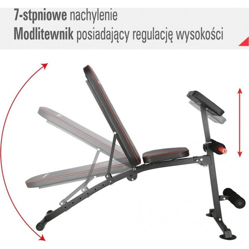 Зручна у використанні система регулювання нахилу лави дозволяє надзвичайно ефективно тренувати багато груп м'язів.