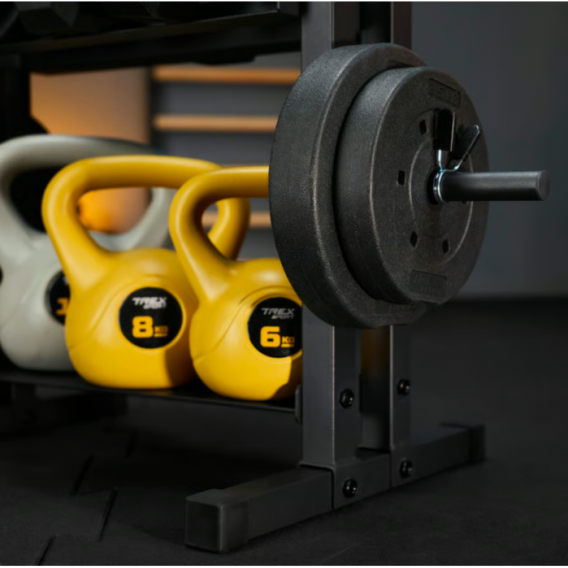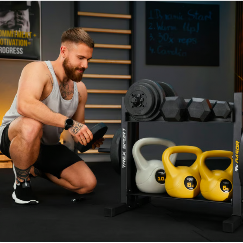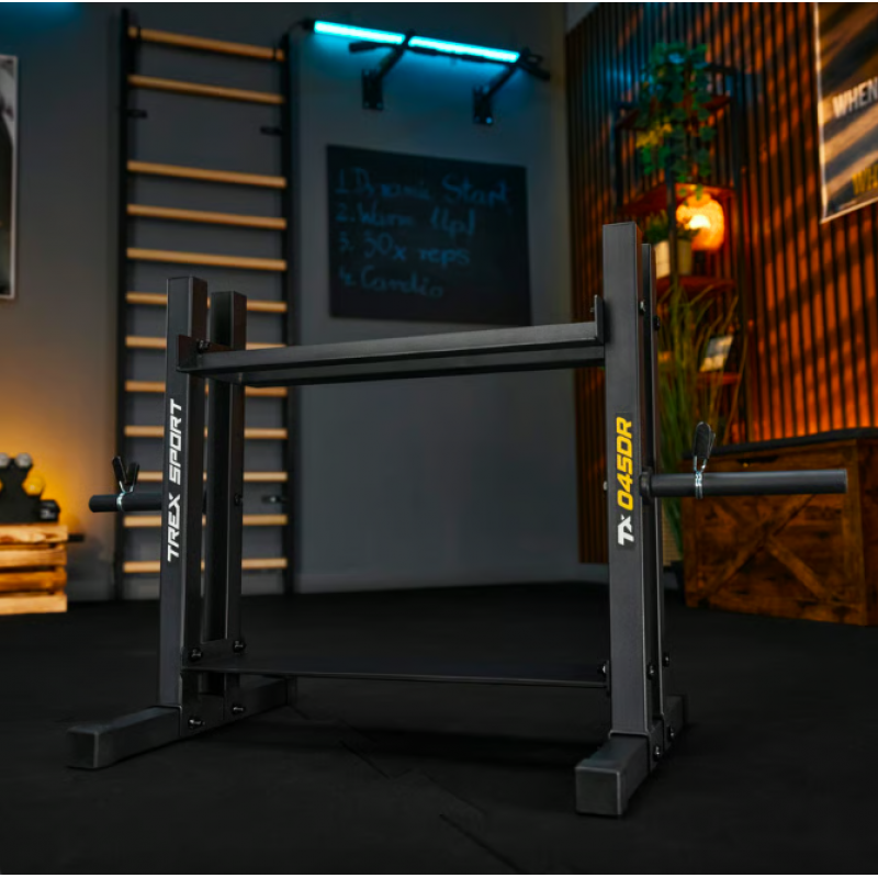 Уявіть тренувальний простір, де все на своїх місцях, де ніщо не заважає вашому фокусу на цілі. Сучасна стійка для дисків, гантелей та гирь TX-045DR - це надійна опора у вашому домашньому спортзалі, яка поєднує компактність, функціональність та безпеку. Завдяки продуманій конструкції, вона забезпечує ідеальну організацію простору та дає змогу зосередитись виключно на тренуваннях у домашніх умовах. Якщо ви шукаєте якісне рішення для зберігання обладнання - настав час купити стійку, яка справді відповідає вашим потребам.