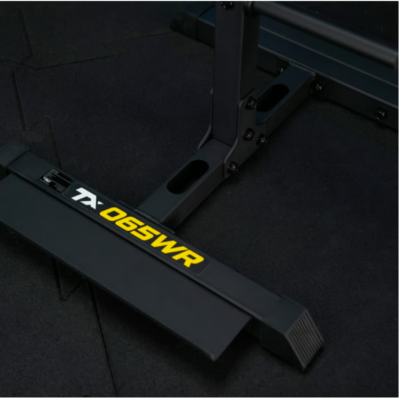 Забудьте про розкидані млинці, грифи на підлозі та зайвий безлад - з TX-065WR ваш домашній спортзал стане прикладом організованості, безпеки та зручності. Ця багатофункціональна стійка поєднує в собі стійке зберігання дисків, грифів і силових аксесуарів у компактній формі. Посилена конструкція, продумане розташування стрижнів, додаткові полиці та надійні отвори для штанг - усе продумано до дрібниць, щоб тренування проходили без зайвих турбот.