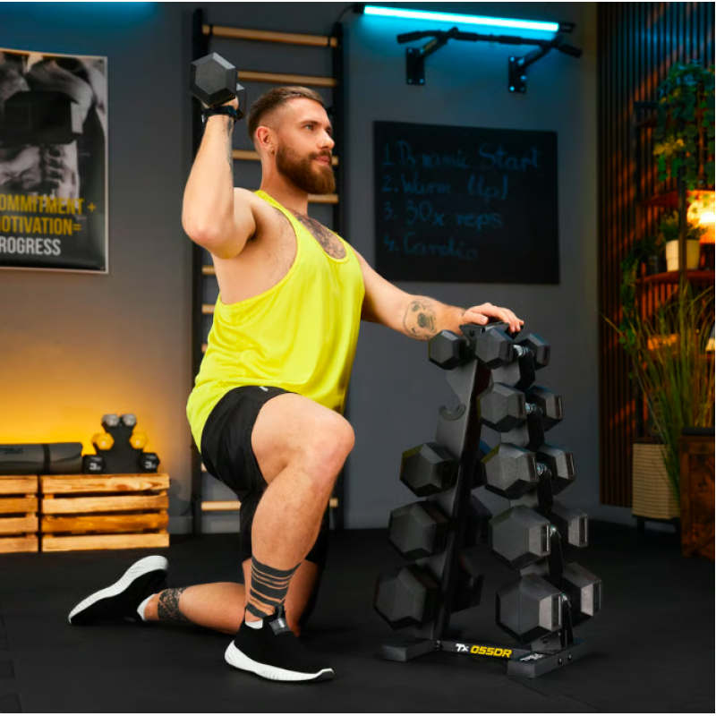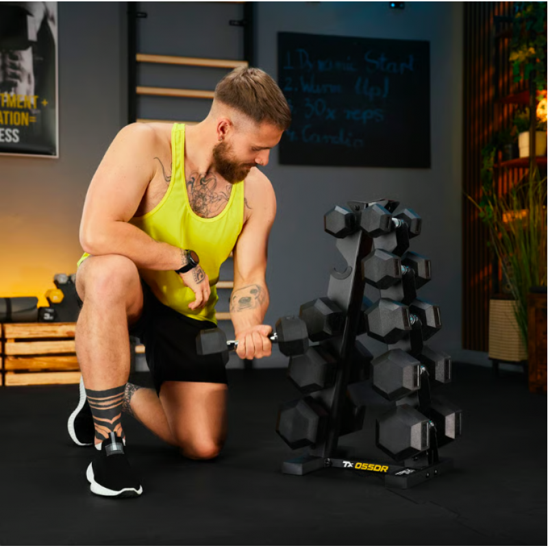 Якщо ви облаштовуєте власний спортивний куточок і шукаєте, як зберігати гантелі акуратно та зручно - ця домашня стійка для гантелей стане вашим надійним помічником. TX-055DR поєднує компактність, безпечну конструкцію та лаконічний дизайн, ідеально вписуючись у будь-який інтер'єр. Це рішення для тих, хто цінує порядок, функціональність і комфорт навіть у невеликому домашньому тренувальному просторі.