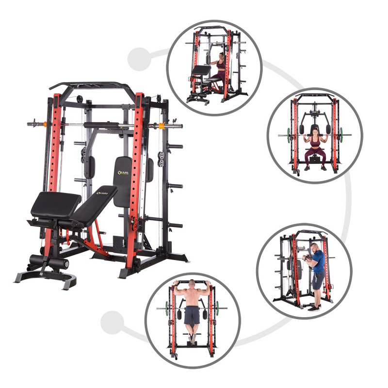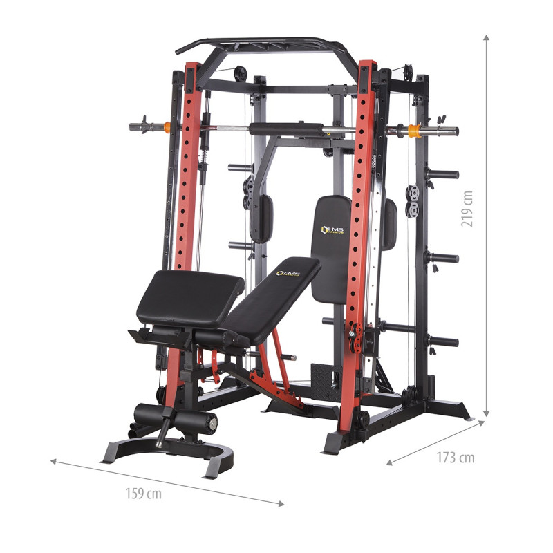 Атлас HMS Cyklop Premium 3 Smith Comercial - це багатофункціональний тренажер напівкомерційного класу. Він ідеально підходить для невеликих фітнес-клубів, а також для домашнього використання. CYKLOP3 - це надійне обладнання, який гарантує безпеку тренувань. Міцні товсті профілі, виготовлені з високоякісної сталі, забезпечують ідеальну стабільність обладнання. Дизайн, продуманий до найменших деталей дозволяє використовувати тренажер легко та інтуїтивно зрозуміло.