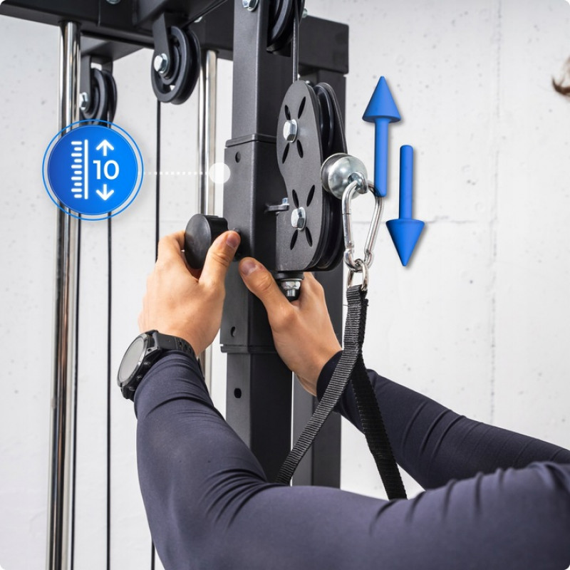- Система 10-ступеневого регулювання висоти тяги дозволяє плавно регулювати точку кріплення троса.