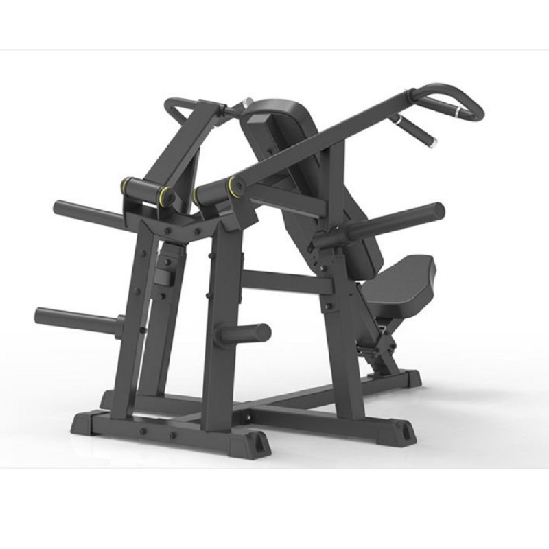 - Сидіння розташоване під кутом, що дозволяє зафіксувати тіло атлета у правильній позиції та знизити тиск на поперек у положенні сидячи. Вузол рухомого важеля розташований на рівні плеча середньостатистичного користувача, що забезпечує більш комфортні відчуття та точне опрацювання м'язів.