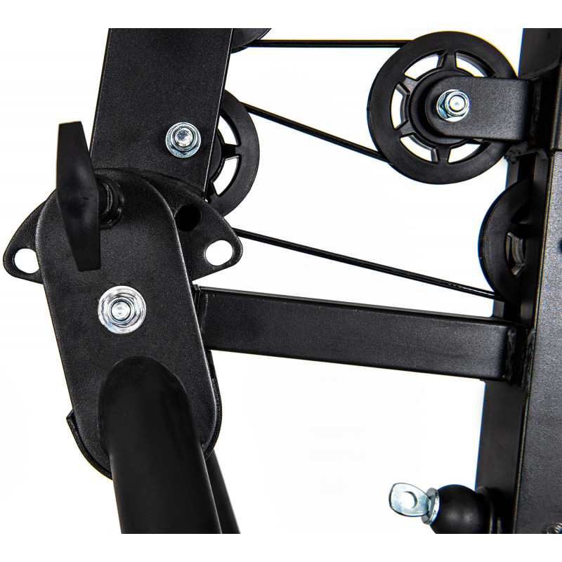 • В комплекті широка ручка для тяги, пряма ручка для тяги, канатна ручка для тяги, дві регульовані ручки для тяги, лямка для ноги.