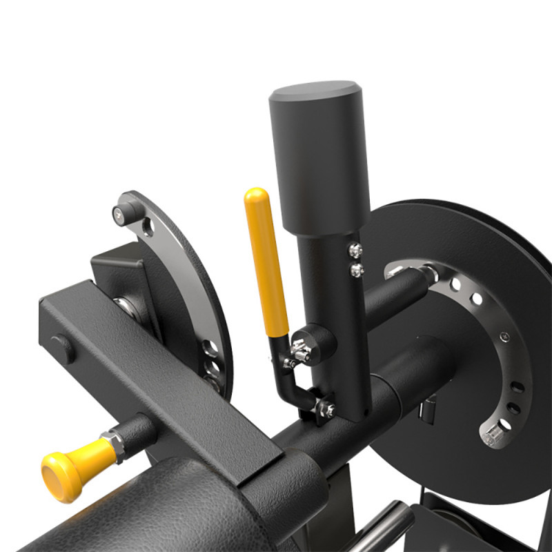 Зручна система регулювання висоти сидіння за допомогою напівавтоматичного фіксатора. Регулювальна стійка сидінь, виготовлена з нержавіючої сталі, забезпечує тривалий термін служби. Сталеві напрямні оброблені антикорозійним покриттям та додатково відполіровані, що забезпечує гладке ковзання. - Регулювання положення валиків для фіксації ніг та спинки дозволяє налаштувати тренажер під користувачів різного зросту та комплекції.