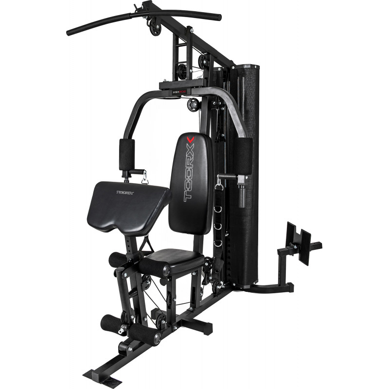 Мультистанція Toorx MSX 50 (MSX-50) - універсальний багатофункціональний силовий тренажер для дому, за допомогою якого ви зможете підтримувати своє тіло в належній формі. Завдяки продуманій конструкції та комплектації додатковими пристосуваннями, на тренажері можливо виконувати багато різних силових вправ на всі групи м'язів. Дана модель має 70-кілограмовий набірний ваговий стек для достатнього рівня навантаження. Безперечна перевага фітнес-станції - її компактні розміри, що дозволяють користуватися тренажером навіть в умовах міської квартири.