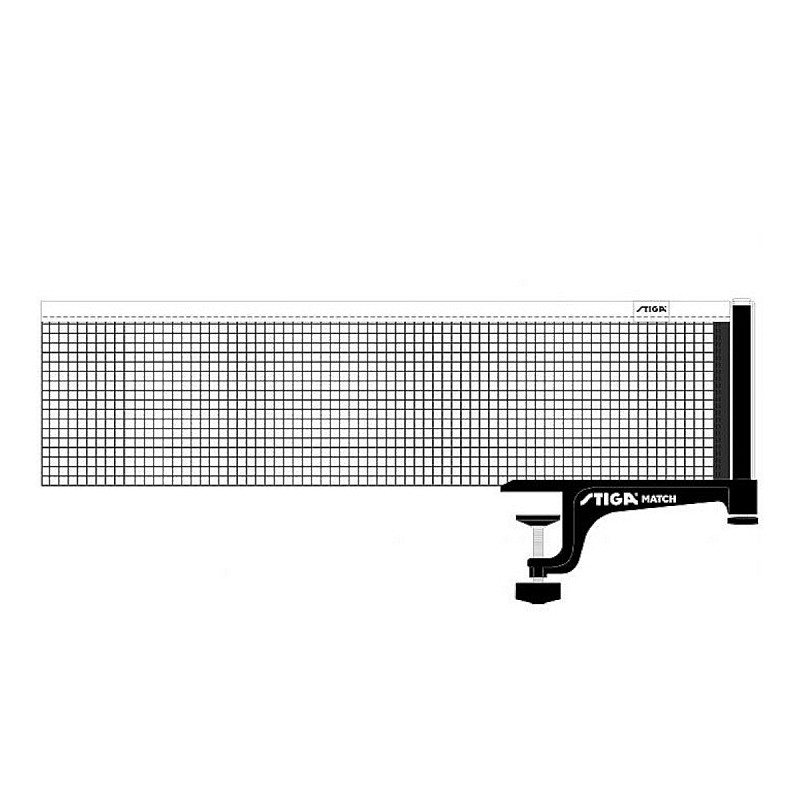 Сітка для настільного тенісу Stiga Match професійного рівня з покращеним гвинтовим кріпленням. Металева конструкція, гвинтове кріплення та можливість регулювання натягу сітки.