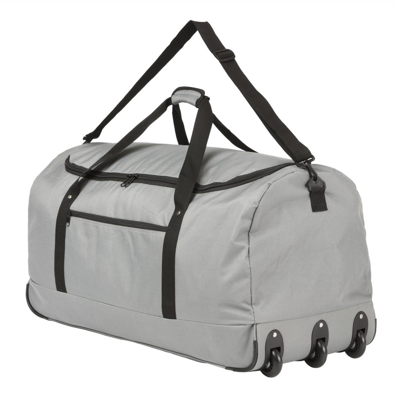 Класична дорожня сумка на колесах TravelZ Wheelbag 100 Liter Grey (603092) практична, легка та забезпечує необхідний функціонал для вашої зручності. Сумка виготовлена з міцного водонепроникного поліестеру 600 D. Рекомендоване навантаження до п'ятнадцяти кілограмів. Одне основне відділення на блискавці. Додаткова кишеня на блискавці на лицьовій поверхні сумки. Бічна ручка для переміщення на колесах. Три вбудовані колеса. На дно нанесені захисні гумові ковпачки, а також додаткова захисна гума на тканині. Переносити сумку можливо за допомогою ручок зверху або ременя на плечі. Після використання сумка TravelZ Wheelbag 100 Liter Grey (603092) складається в зручний чохол і набуває компактного розміру (37 х 17 х 17 см).