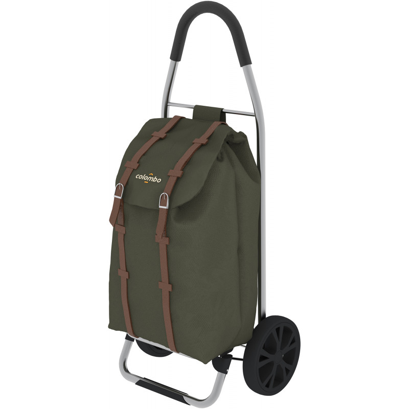 Сумка-візок Colombo Dakar (CRL004) - виготовлена з високоякісних матеріалів та має стильний дизайн. Особливістю даної моделі є посилена рама, яка покрита порошковою фарбою для захисту від корозії, легка та водночас міцна, здатна перевозити вантажі до тридцяти кілограмів. Два великі колеса для легкого пересування по нерівностях та бордюрах. Зона для тримання візка прогумована для комфортного використання в холодну пору року. Зручне зберігання та переміщення сумки-візка забезпечується складаною основою та знімними колесами.