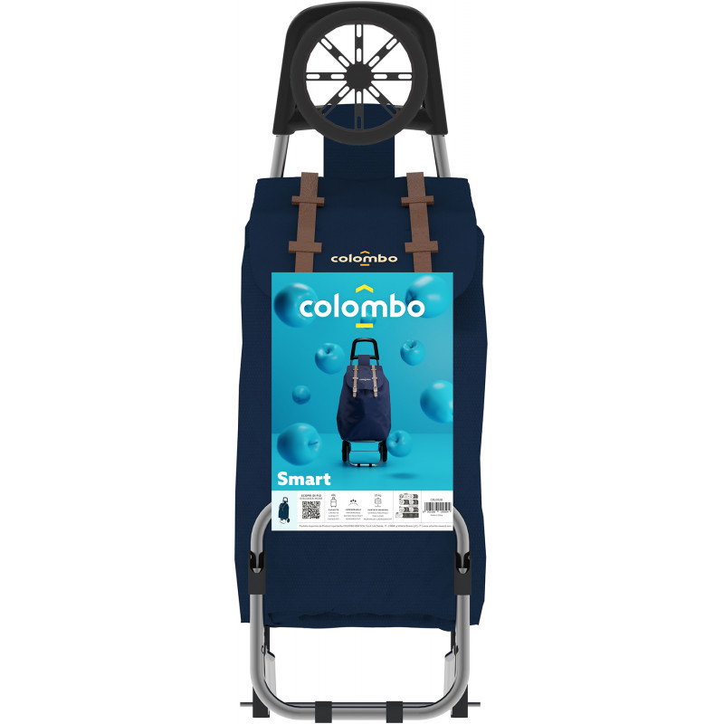 Сумка-візок Colombo Smart Blue (CRL002B) - містка та стильна модель, яка поєднує в собі сучасний дизайн та високу практичність, забезпечуючи комфортний шопінг як в супермаркеті, так і на ринку. Ручка візка обладнана пластиковою накладкою для комфортного тримання у холодну пору року. Рама має складану основу та знімні колеса для зручного зберігання та транспортування. Сумка має широку горловину, яка щільно закривається стяжним шнуром та накривається клапаном. Зовнішня сторона коліс виготовлена з гуми для зменшення шуму та більшого терміну експлуатації.