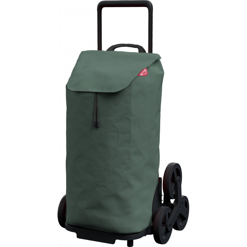 Оновлена модель сумки-візка Gimi Tris Green (168424), шасі якої оснащене двома блоками із трьох коліс, які дозволяють швидко долати сходи, бордюри та інші перешкоди під час руху вгору або вниз. Сумка-візок Gimi Tris 52 Green (168424) розрахована на об'єм 52 літри. Матеріал сумки із водозахисним покриттям, всередині розташована кишеня-гаманець на блискавці для зберігання дрібних предметів. Зручна широка горловина стягується шнуром із фіксатором і має захисний клапан.