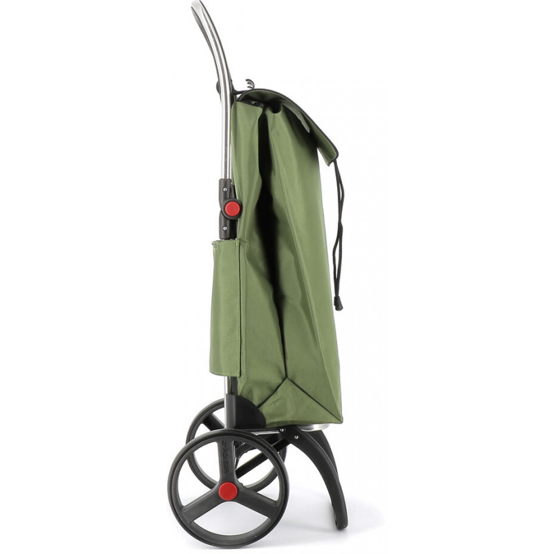 Сучасна сумка-візок Rolser I-Max MF 2LRSG Kaki (IMX308-1005) стане надійним супутником при поїздці за покупками до торгового центру або на ринок за продуктами. Фірмове алюмінієве шасі візка дозволяє транспортувати вантаж вагою до 40 кг. Шасі 2LRSG має систему для повного складання, а також оснащене адаптером для з’єднання з візком супермаркету. Розкладна основа виконана з алюмінію, а опора - з міцного термостійкого пластику. Пара литих ультралегких коліс діаметром 20 см сприяють відмінній маневреності та плавному коченню по нерівностях. Колеса можна знімати для завантаження візка в автомобіль, або для зберігання у невеликих приміщеннях: натискаючи на червоні кнопки, Ви легко знімаєте колеса з шасі та отримуєте ідеально плоску форму для зручного зберігання. Внутрішня частина рукоятки має пластикове покриття для комфортного транспортування сумки-візка в холодну пору року. Міцний поліестеровий матеріал сумки захистить вміст від дощу та снігу. Сумка знімна, має зручну широку горловину, яка стягується шнуром з фіксатором. Верх сумки накритий захисним клапаном. На дні сумки передбачене жорстке вставне пластикове дно. Візок дуже мобільний і стійкий, він легко розкладається та складається.