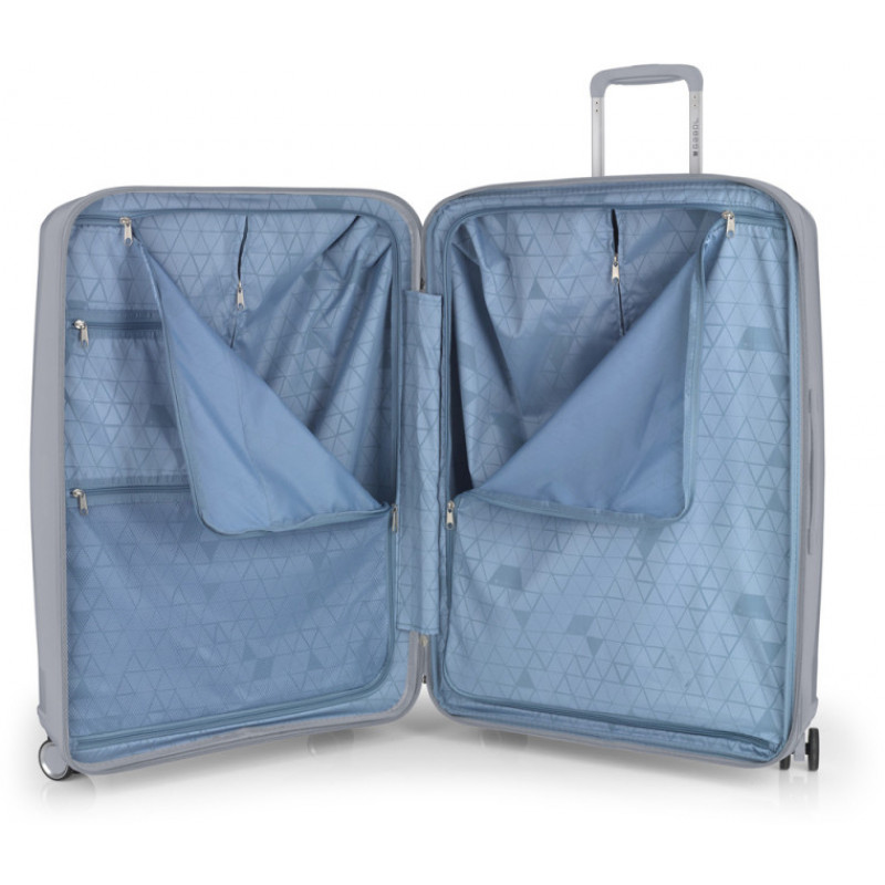 Валіза Gabol Queens (L) Plata (125047-022) – це більше, ніж просто валіза. Це ваш найкращий помічник для комфортної, безпечної та стильної подорожі. Виготовлена з поліпропілену, матеріалу, відомого своєю легкістю та міцністю. Вона здатна витримати значні випробування і при цьому зберегти ваші речі в ідеальному порядку.