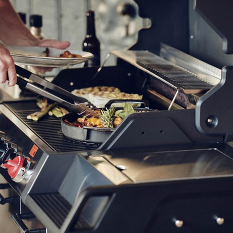 Чотири роздільні плавно регульовані пальники-MONROE PRO 4 SIK Turbo разом з точним термометром допоможуть готувати ваші улюблені страви в необхідному температурному режимі, домагаючись найкращого результату. При цьому об'ємна форма кришки дозволить готувати продукти великого розміру. Усередині гриля знаходиться спеціальний відвідний канал, по якому в процесі приготування стікає жир, потрапляючи в знімний зручний для миття і очищення жиросборний лоток.