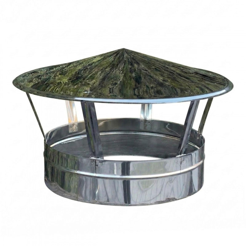 Конструкція димохода для мангала максимально проста та надійна. Це одностінна труба та грибок з неіржавкої сталі, яка добре витримує високі температури та вплив атмосферних умов. Завдяки цьому грибок для мангала слугує довго навіть у разі регулярного використання на відкритому повітрі.