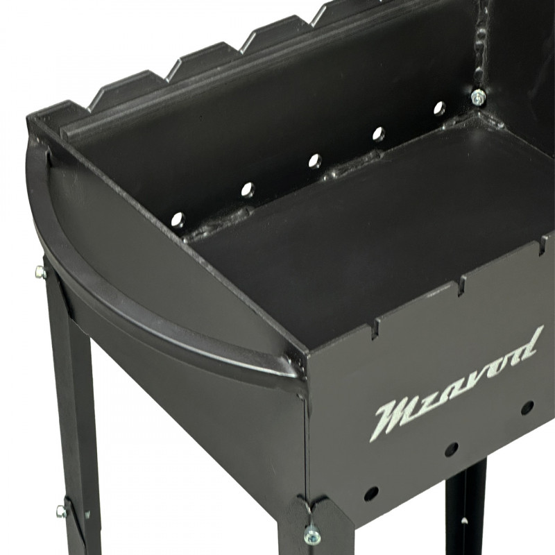 Жаровня мангалу на ніжках виготовлена з металу завтовшки 3 мм і пофарбована термостійкою емаллю чорного кольору, що витримує температуру до 800°C.
