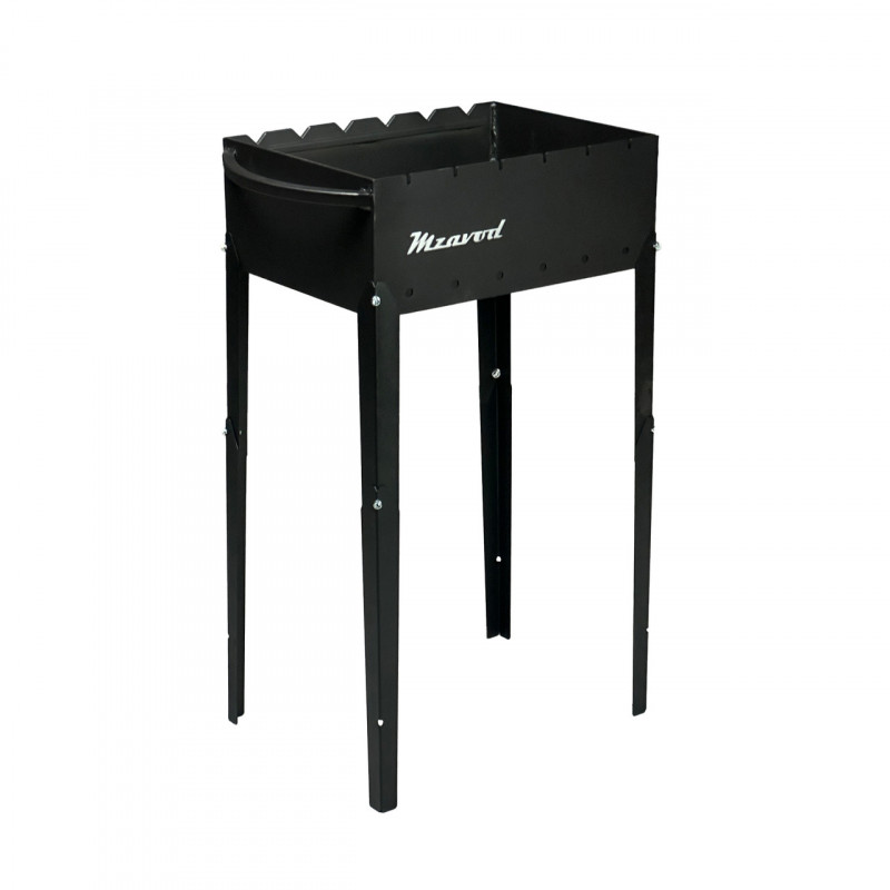 Жаровня мангалу на ніжках виготовлена з металу завтовшки 4 мм і пофарбована термостійкою емаллю чорного кольору, що витримує температуру до 800°C.