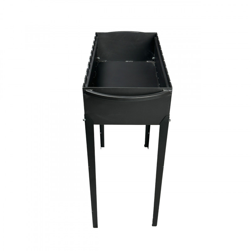 Жаровня мангалу на ніжках виготовлена з металу завтовшки 3 мм і пофарбована термостійкою емаллю чорного кольору, що витримує температуру до 800°C.