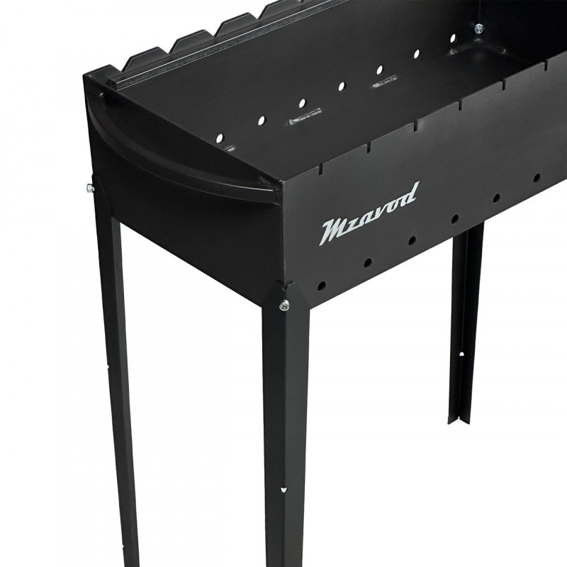 Завдяки знімним ніжкам, покритим чорною порошковою фарбою, мангал стає зручним для транспортування та зберігання, що робить його ідеальним вибором для поїздок на природу або використання на терасі. Опціонально може бути обладнаний однією або двома полицями, які кріпляться до ніжок.