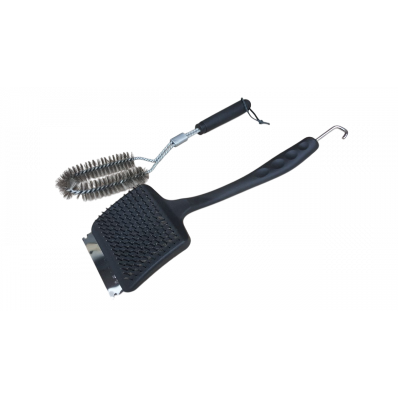 Набір для чищення гриля-барбекю Time Eco BP-214 — це практичний комплект інструментів, призначений для легкого та ефективного видалення залишків їжі, жиру та нагару з решіток барбекю та грилів. Підходить як для дачного, так і для професійного використання.Особливості У комплект входить 2 предмети: щітка та шкребок для чищення решіток і жарильних поверхонь; Робоча частина виготовлена з міцної нержавіючої сталі товщиною 1,5 мм — стійка до корозії та високих температур; Прогумовані ручки забезпечують зручне захоплення і захист від ковзання; Можливість підвішування — петля або гачок на ручці для зручного зберігання; Можна мити в посудомийній машині.