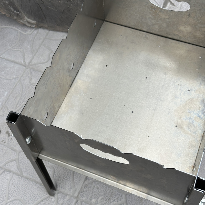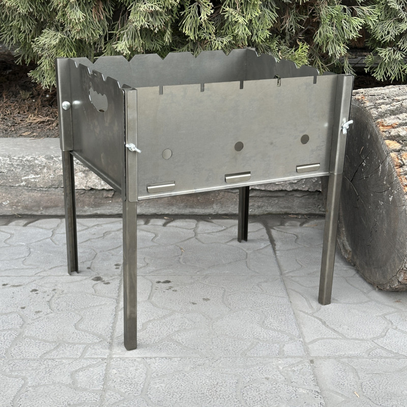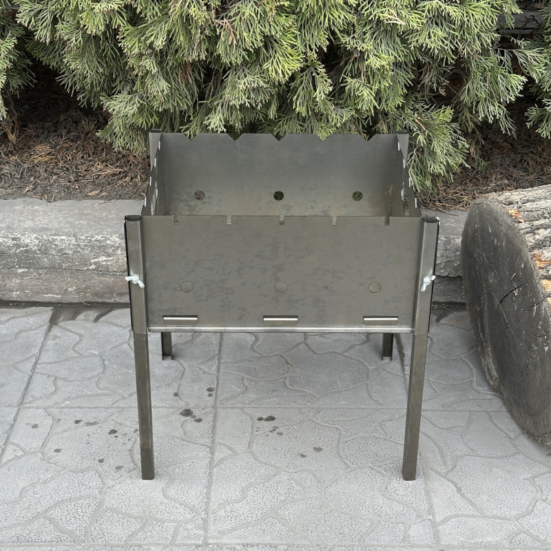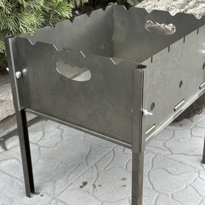 Жаровня розбірного мангалу виконана із сталі товщиною всього 0,8 мм без будь-якого покриття, що робить його дуже привабливим за ціною.