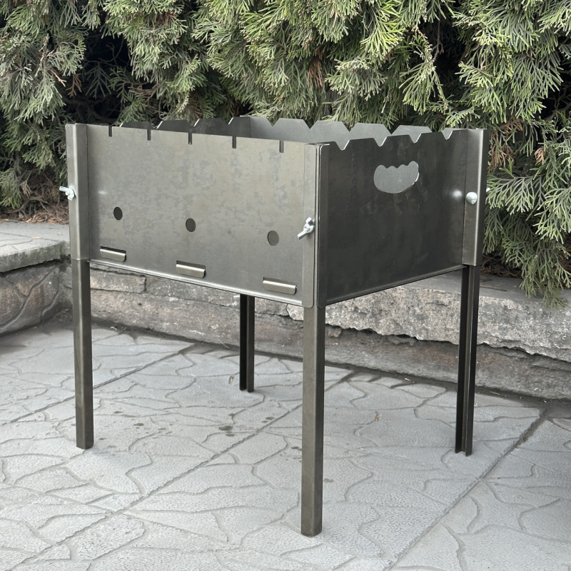 Мангал розбірний серійного виробництва виготовлений із сертифікованої сталі, яка забезпечує міцність та довговічність. Ви можете бути впевнені в його надійності навіть за інтенсивного використання більше 20 років.