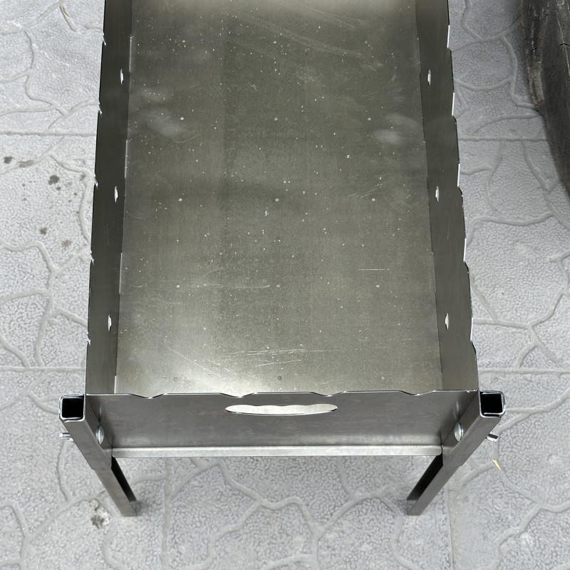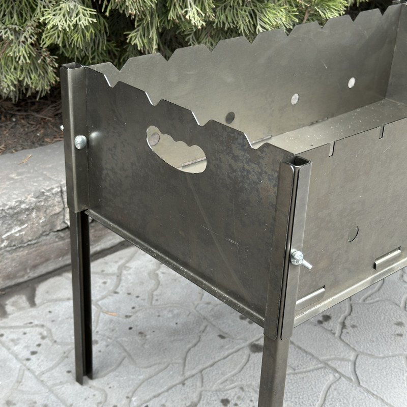 Жаровня розбірного мангалу виконана із сталі товщиною всього 0,8 мм без будь-якого покриття, що робить його дуже привабливим за ціною.