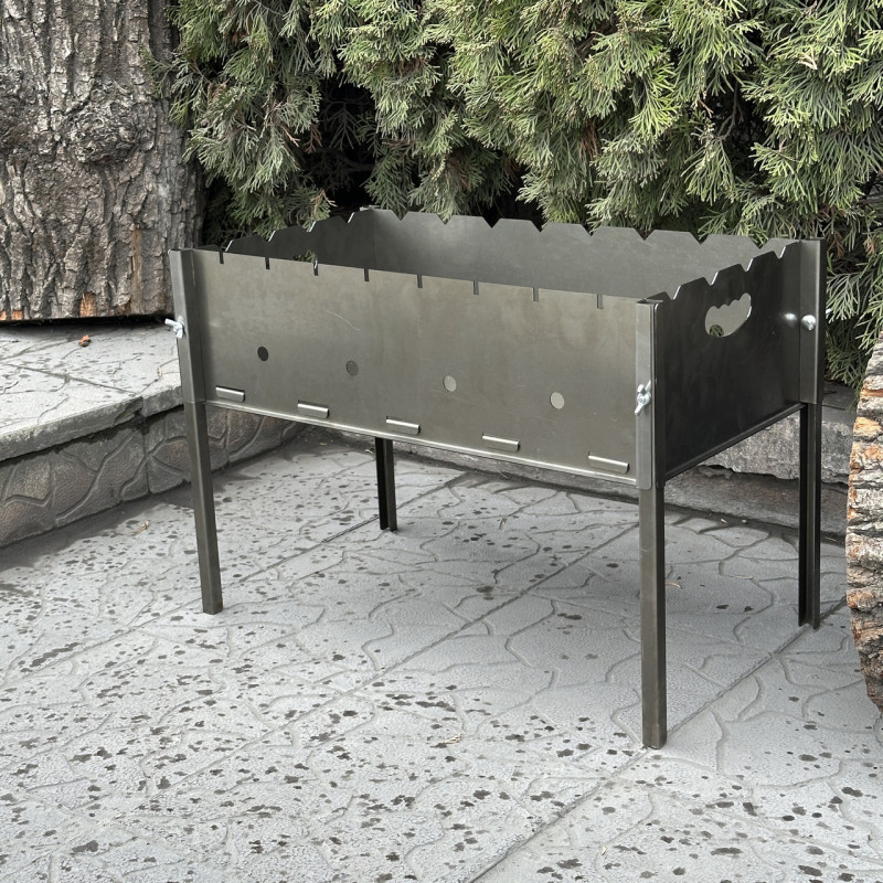 Мангал розбірний серійного виробництва виготовлений із сертифікованої сталі, яка забезпечує міцність та довговічність. Ви можете бути впевнені в його надійності навіть за інтенсивного використання більше 20 років.