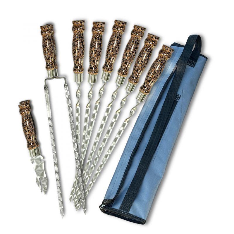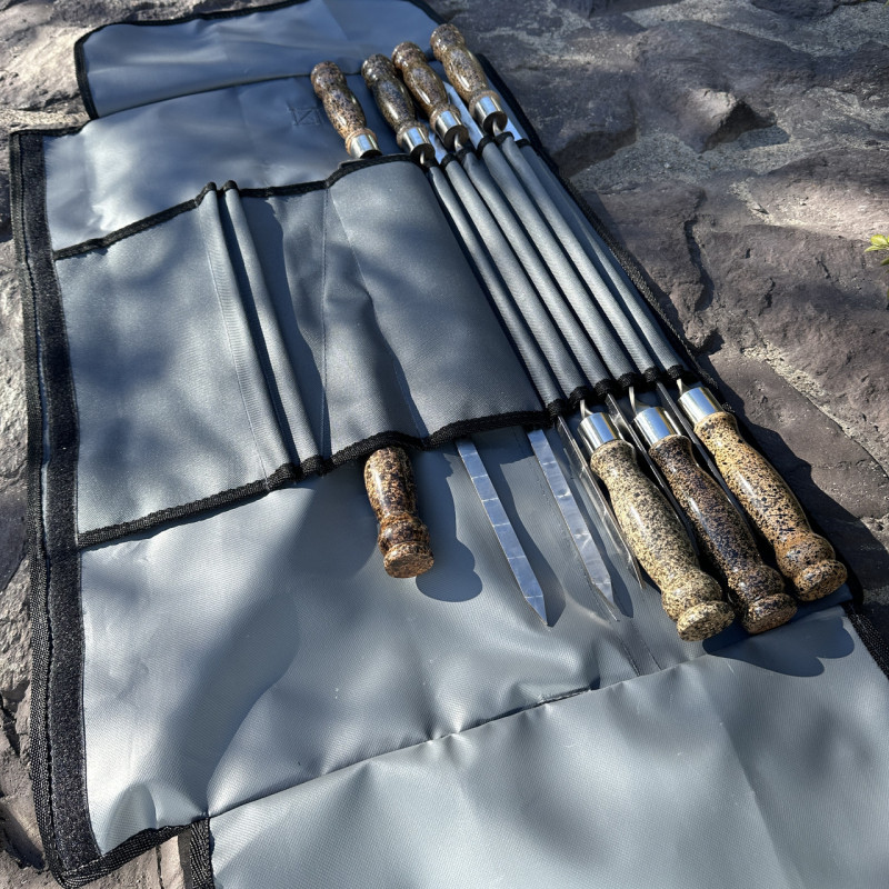 Набір шампурів Арго 6/1/1 мармурова ручка в сірому чохлі